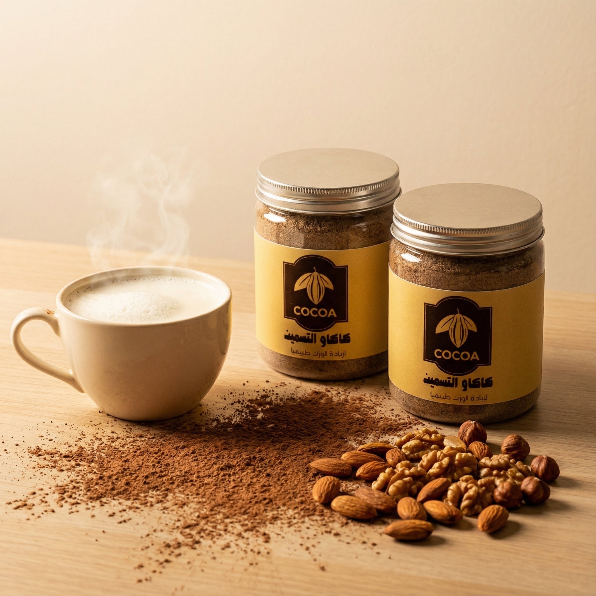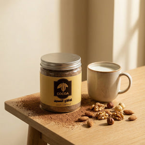 🌾 المكونات: كاكاو طبيعي لذيذ 🍫 + مكسرات مطحونة 🥜 + شوفان و قمح
