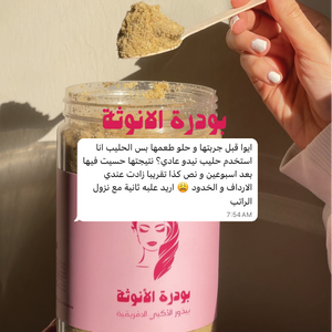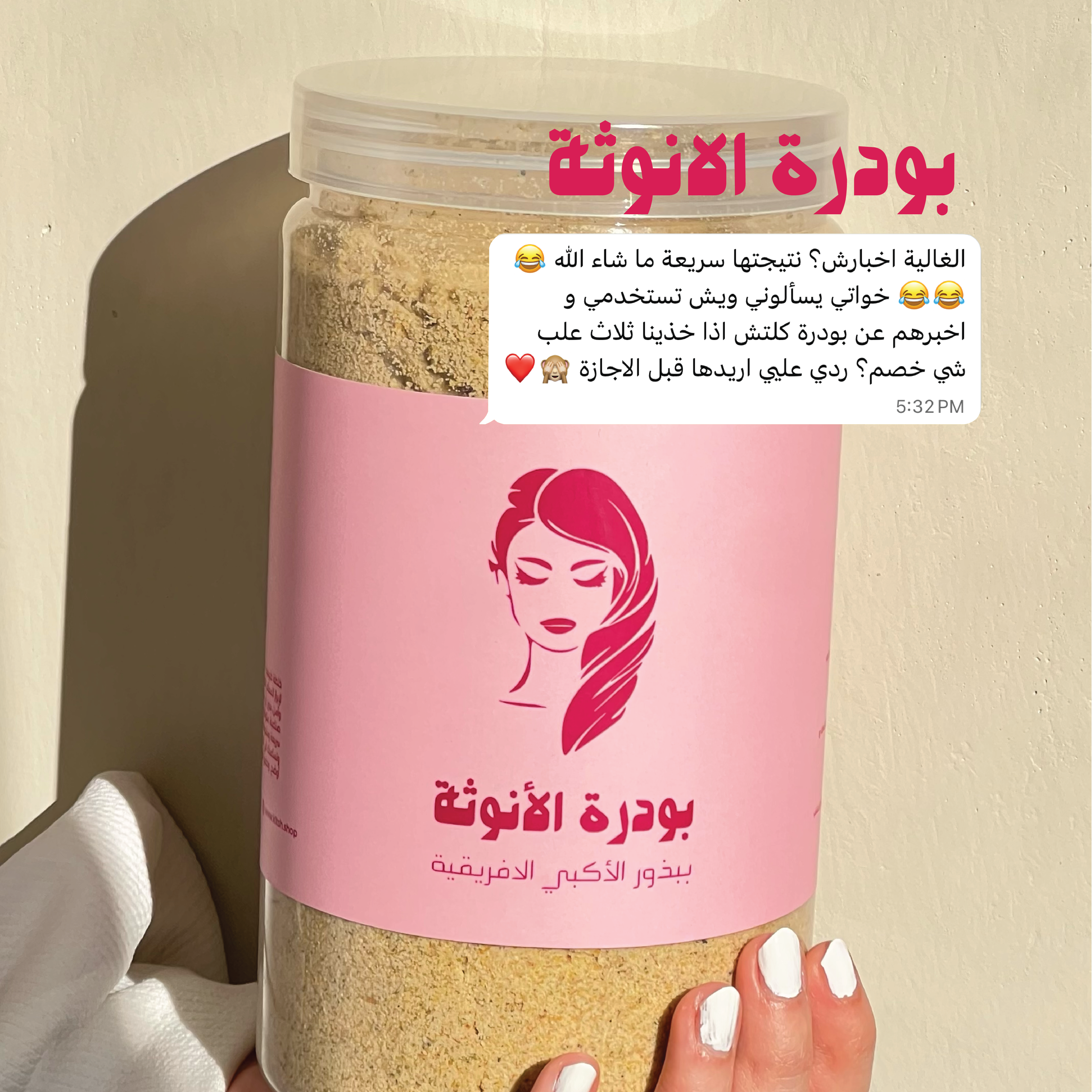 بودرة الأنوثة من كلتش هي تركيبة طبيعية مكوّنة من ٩ مكونات غذائية وأعشاب ومكسرات مطحونة، مختارة بعناية لدعم صحة الفتيات وإمداد الجسم بالعناصر التي يحتاجها ليظهر بأفضل حيويّة ونضارة تم تصميمها لتوفر للجسم ما يحتاجه من طاقة، عناصر غذائية، ونِسَب طبيعية تساعد على تحسين التوازن الغذائي، تعزيز الصحة العامة، ومنح إحساس بالراحة والحيوية و تمتاز البودرة بمذاق لذيذ وسهل الاستخدام، وتعتبر خيارًا مناسبًا لكل بنت تبحث عن منتج طبيعي يدعمها يوميًا و تحضّر البودرة بخبرة وجودة عالية لضمان منتج آمن، طبيعي، ومناسب للاستخدام اليومي.